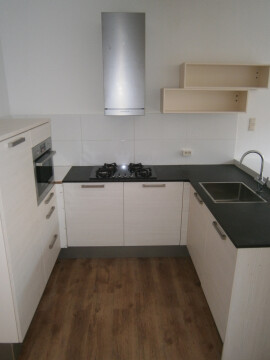 In de achterkamer bevindt zich een openkeuken met koelkast, vaatwasser en oven. eenvoudige douche en toilet. Verder een combiketel en achterdeur naar de tuin met ruime berging.