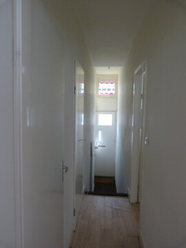 Entree op begane grond, hal, toilet, grote woonkamer met toegang tot tuin. Aparte keuken, voorzien van gasfornuis, oven, afzuigkap, koel-vriescombinatie en vaatwasser, met trap naar beneden waar zich twee slaapkamers, badkamer en apart toilet bevinden. Geschikt voor 3 studenten, waarbij van woonkamer ook slaapkamer gemaakt kan worden.