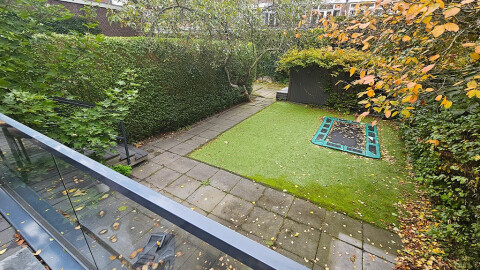 Binnen tref je een stijlvol ingerichte woning, verdeeld over de beletage. De ruime hal met handige bergkasten leidt naar een moderne keuken, volledig uitgerust met alle gemakken. Vanuit hier stap je direct het buitenleven in: een fantastische achtertuin van ruim 90 m², bestaande uit een verhoogd terras en een lager gelegen tuin met kunstgras – ideaal voor een borrel in de zon of een ontspannen avond buiten.